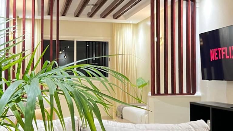 SUITOUISS - Agdal 1 bietet Übernachtungsmöglichkeiten mit Balkon und Blick auf den Garten. Die Unterkunft umfasst eine Terrasse sowie Annehmlichkeiten wie kostenloses WLAN.