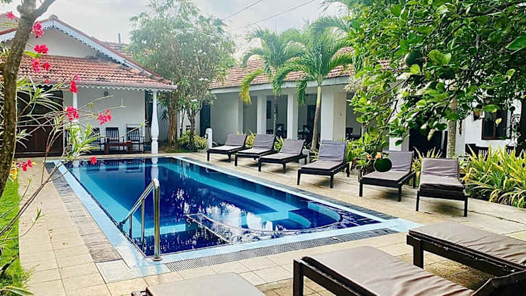 Die Sujeevani Villa in Negombo ist eine ideale Unterkunft für einen entspannten Strandurlaub. Mit einem Balkon und einem Sportpool im Freien können Sie die Gartenlandschaft genießen und sich rundum wohlfühlen. Die Villa bietet geräumige Wohn- und Essbereiche, zwei Schlafzimmer und ein gut ausgestattetes Badezimmer. Sie können auch von den Grillmöglichkeiten profitieren und bei Bedarf einen Mietwagen oder einen Flughafentransfer organisieren lassen. Die Lage der Unterkunft ist ideal, nur 500 m vom Strandpark Negombo entfernt und in der Nähe von Sehenswürdigkeiten wie der St. Antonius-Kirche. Der internationale Flughafen Bandaranaike ist ebenfalls gut erreichbar.