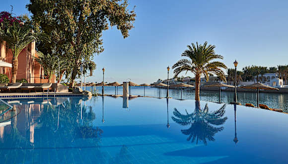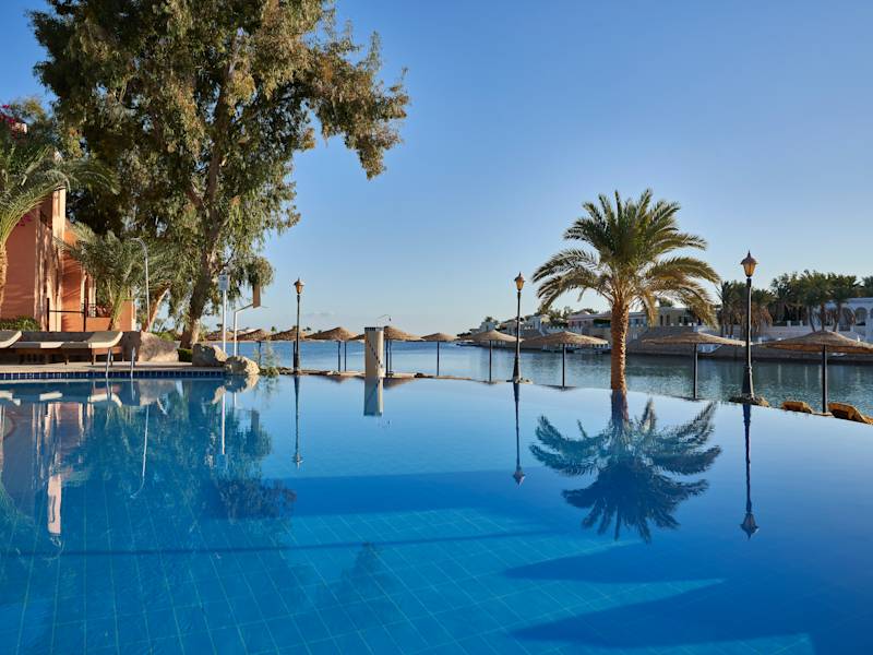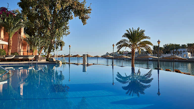 Direkt am groben Sandstrand gelegen, umgeben von Lagunen und nur einige Gehminuten von der Ortschaft El Gouna entfernt. Nach Hurghada sind es ca. 30 Minuten (Transfer gegen Gebühr). Die vorgelagerte Insel Zeytuna gehört zum Hotel und wird mit Shuttleboot angefahren.