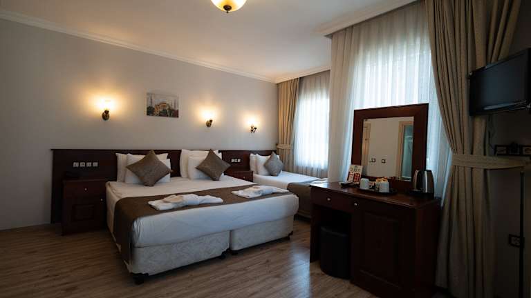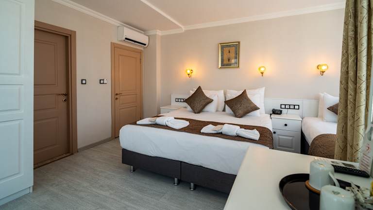 Die Zimmer im Hotel Sultanahmet's Çesme sind modern und stilvoll eingerichtet. Sie verfügen über Klimaanlage, kostenfreies WLAN, einen Flachbild-TV und eine Minibar. Kostenloses Tee- und Kaffeezubehör steht Ihnen ebenfalls zur Verfügung. Die Badezimmer sind mit modernen Armaturen ausgestattet.