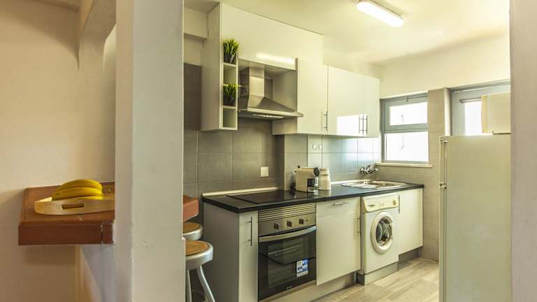Die Ferienwohnung besteht aus zwei Schlafzimmern, einem Wohnzimmer und einer voll ausgestatteten Küchenzeile mit Kühlschrank und Wasserkocher. Ein Badezimmer mit Dusche und kostenlosen Pflegeprodukten ist ebenfalls vorhanden. Handtücher und Bettwäsche werden bereitgestellt.