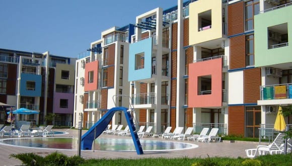 Das Sun City I liegt im südlichen Teil von Sonnenstrand, nur etwa 300 m vom Strand und 2 km vom Zentrum des Badeortes entfernt. Der Strand Cacao Beach, bekannt für seinen breiten Sandstreifen, romantische Restaurants und pulsierendes Nachtleben, befindet sich in der Nähe. Öffentliche Verkehrsmittel sind nur 2 Gehminuten entfernt.