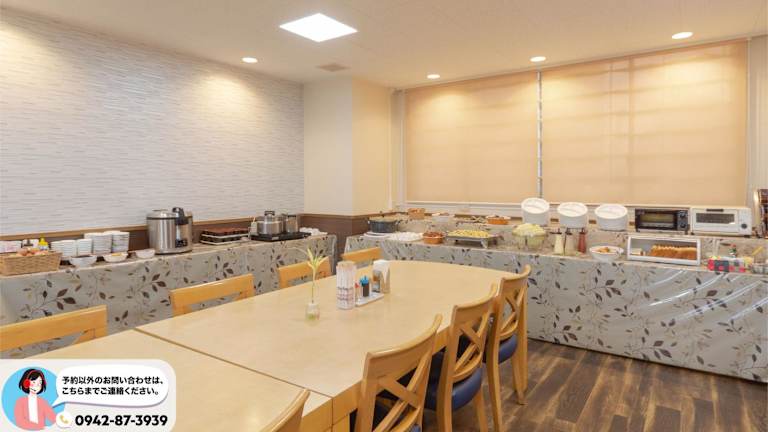 Das Sunhotel Tosu Saga bietet ein japanisches/westliches Frühstücksbuffet im Soleil Dining Room im Erdgeschoss. Hier können Sie Ihre Morgenmahlzeit genießen und gestärkt in den Tag starten. In der Lobby des Hotels steht Ihnen kostenloser Kaffee zur Verfügung und es gibt auch Getränkeautomaten, falls Sie Durst haben.