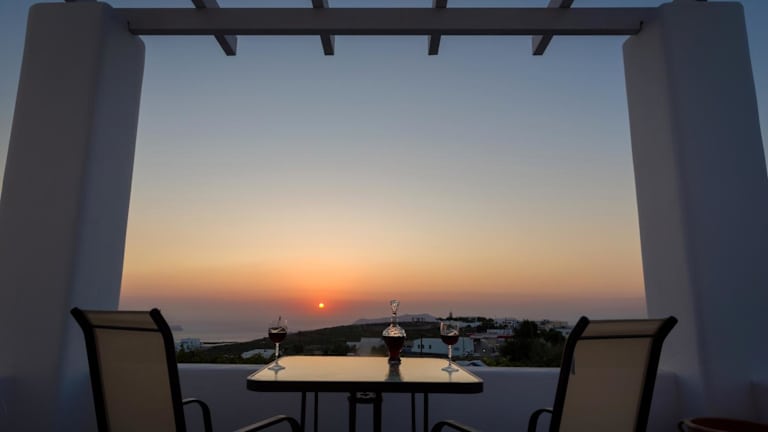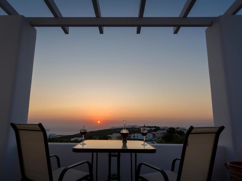 Die Sun View Villas sind ideal in Pirgos gelegen und bieten einen atemberaubenden Meerblick. Der Strand Thermis ist nur 2,3 km entfernt und lädt zum Sonnenbaden und Schwimmen ein. In der Nähe können Sie auch den Hafen von Santorin besuchen, der 4,4 km entfernt ist, und das Archäologische Museum von Thera, das in 6,6 km erreichbar ist. Der internationale Flughafen Santorin liegt nur 5 km von der Unterkunft entfernt und bietet eine bequeme Anreisemöglichkeit.
