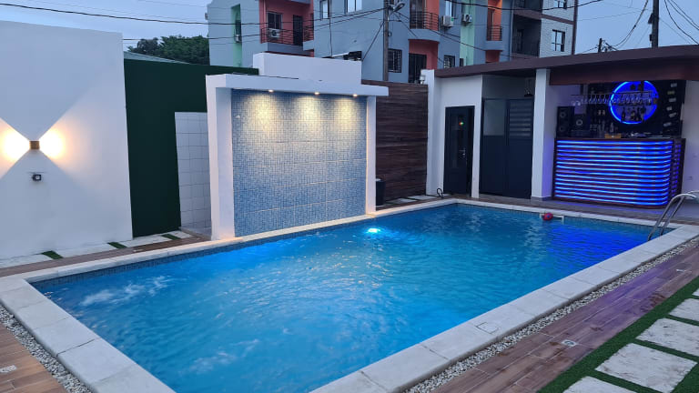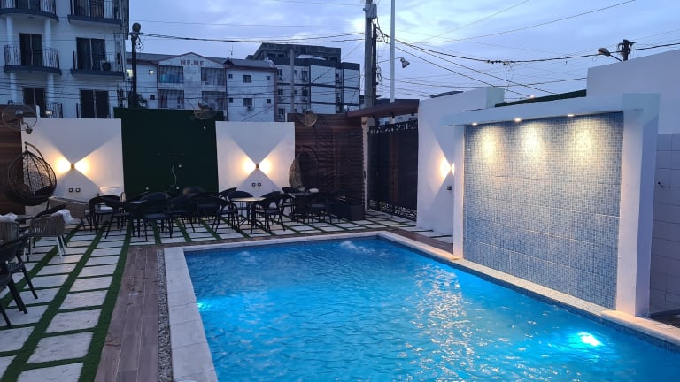 Das Suna' a Home Bonapriso in Douala ist die ideale Unterkunft, um Ihren Aufenthalt in der Stadt zu einem unvergesslichen Erlebnis zu machen. Mit einem ganzjährig geöffneten Außenpool, kostenfreiem WLAN und kostenfreien Privatparkplätzen bietet das Aparthotel alle Annehmlichkeiten, die Sie für einen komfortablen Aufenthalt benötigen. Die klimatisierten Unterkünfte sind modern eingerichtet und verfügen über eine voll ausgestattete Küchenzeile sowie ein eigenes Bad. Einige Unterkünfte bieten zudem einen Balkon oder eine Terrasse mit herrlichem Blick auf die Stadt oder den Pool. Entdecken Sie die nahegelegenen Sehenswürdigkeiten wie das Douala-Museum und den Park Bonanjo, die beide nur wenige Kilometer entfernt sind. Der internationale Flughafen Douala befindet sich ebenfalls in unmittelbarer Nähe des Hotels.