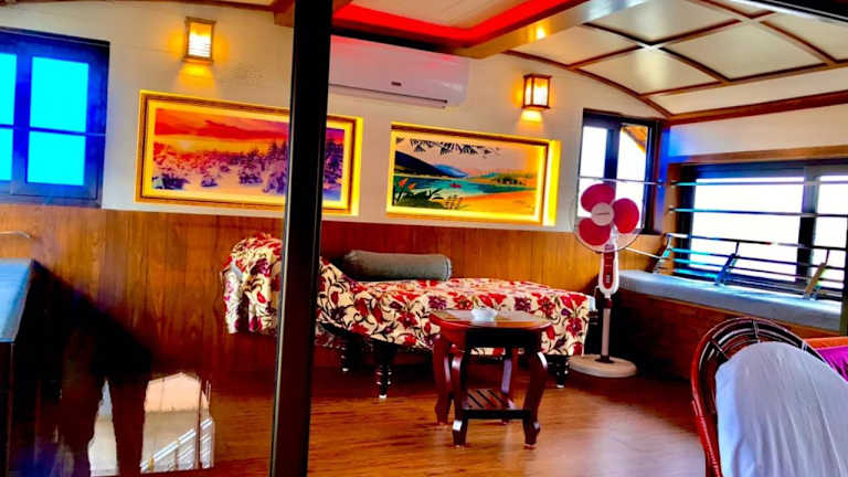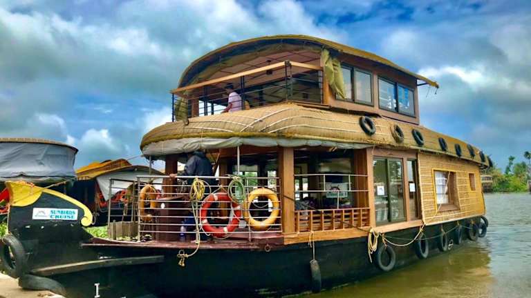 Die Sunbirds Premium House Boat at Alleppey Backwaters Kerala ist eine Unterkunft in Form eines Hauses auf einem Boot, das Gästen eine Terrasse und ein Restaurant bietet. Kostenloses WLAN ist in der gesamten Unterkunft verfügbar und ein Privatparkplatz steht vor Ort zur Verfügung.