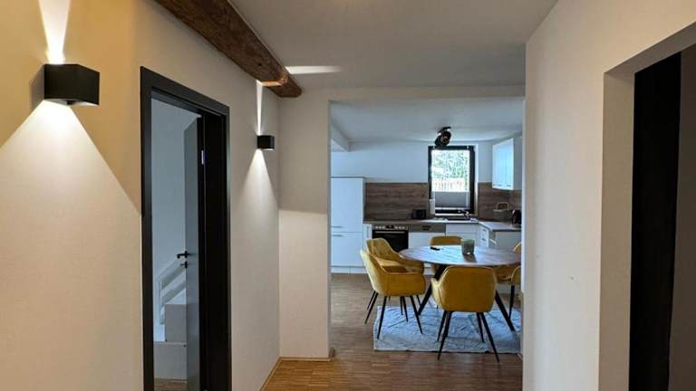 Die Ferienwohnung umfasst vier Schlafzimmer, ein Wohnzimmer sowie zwei Badezimmer, die mit einer Dusche ausgestattet sind. Zur weiteren Ausstattung gehören ein Flachbild-TV sowie eine gut eingerichtete Küche mit einem Geschirrspüler und einem Ofen. Bettwäsche und Handtücher werden bereitgestellt.