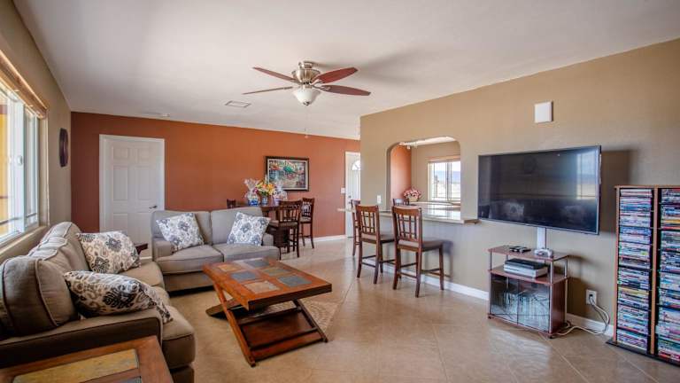 Das Sunlight Retreat in Twentynine Palms ist der ideale Ort für einen entspannten Aufenthalt in der Nähe des Fortynine Palms Oasis Trail. Mit einem Außenpool, einem Casino und kostenfreiem WLAN bietet das Ferienhaus alle Annehmlichkeiten, die Sie für einen gelungenen Urlaub benötigen. Genießen Sie die Aktivitäten wie Wandern, Radfahren und Billard in der Umgebung und entspannen Sie im Whirlpool des Ferienhauses. Die komfortablen Schlafzimmer, der Flachbild-TV und die gut ausgestattete Küche sorgen für einen angenehmen Aufenthalt.
