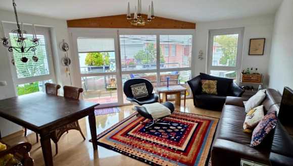 Die Ferienwohnung umfasst drei Schlafzimmer, ein Badezimmer mit Dusche und Badewanne, ein Wohnzimmer mit Sitz- und Essbereich sowie eine voll ausgestattete Küche mit Kühlschrank, Geschirrspüler und Ofen. Ein DVD-Player gehört ebenfalls zur Ausstattung. Handtücher und Bettwäsche werden bereitgestellt.