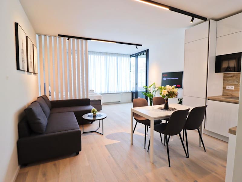 Sunny Apartment in Smichov, Prague 5 bietet einen Balkon mit Stadtblick, einen Garten sowie eine Terrasse. Kostenloses WLAN steht in der gesamten Unterkunft zur Verfügung und ein Privatparkplatz ist vorhanden.