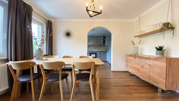 Das Apartment verfügt über 4 Schlafzimmer und 2 Badezimmer, die Platz für die ganze Familie bieten. Die Zimmer sind modern und komfortabel eingerichtet und bieten einen erholsamen Rückzugsort nach einem Tag voller Aktivitäten. Das Apartment verfügt außerdem über einen Flachbild-TV, einen Essbereich und eine voll ausgestattete Küche, in der Sie Ihre eigenen Mahlzeiten zubereiten können. Die Terrasse bietet einen herrlichen Blick auf die Berge und ist der perfekte Ort, um die frische Luft und die Sonne zu genießen.