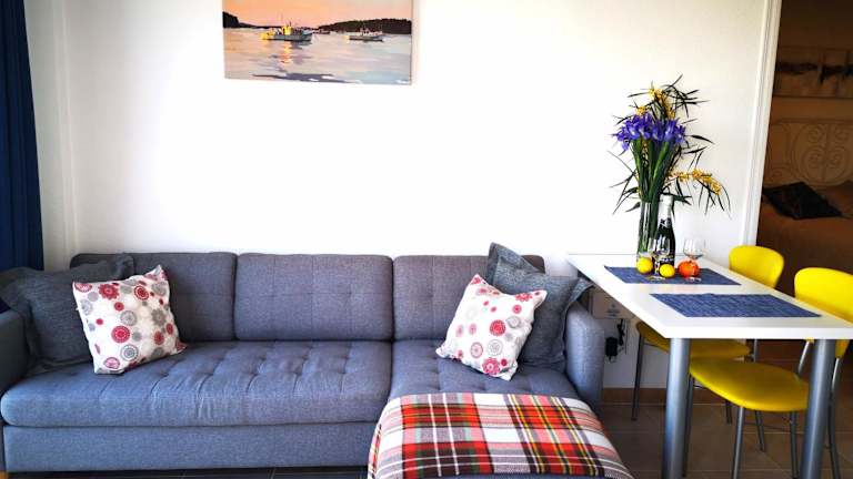 Die Ferienwohnung umfasst 1 Schlafzimmer und 1 Badezimmer. Zur Ausstattung gehören Bettwäsche, Handtücher, ein Flachbild-TV mit Kabelkanälen sowie eine voll ausgestattete Küche. Eine Terrasse mit Meerblick steht ebenfalls zur Verfügung.