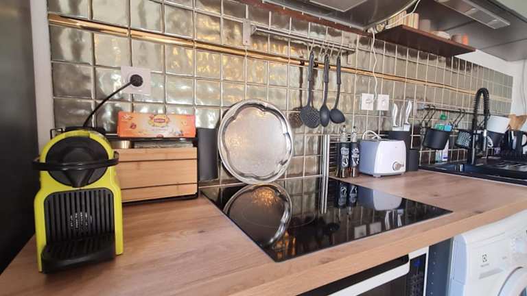 Die Ferienwohnung verfügt über eine voll ausgestattete Küche mit Kühlschrank und Kaffeemaschine, die eine Selbstversorgung ermöglicht. Weitere Verpflegungsmöglichkeiten sind in der Umgebung der Unterkunft zu finden.
