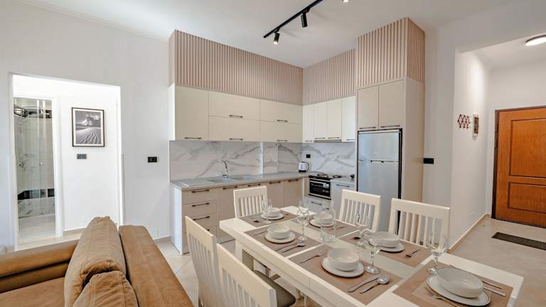 Die Apartments sind mit einem Sitzbereich, einem Satelliten-Flachbild-TV, einer voll ausgestatteten Küche mit Kühlschrank und Ofen sowie einem eigenen Badezimmer mit Badewanne oder Dusche und Haartrockner ausgestattet.