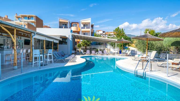 Das Sunray Hotel in Limenaria ist die ideale Wahl für einen erholsamen Strandurlaub. Die Studios bieten einen herrlichen Blick auf das Meer oder den Pool und sind geschmackvoll eingerichtet. Genießen Sie traditionelle Speisen im hoteleigenen Restaurant und entspannen Sie auf der Sonnenterrasse oder am Strand. Kostenlose Parkplätze und WLAN runden das Angebot ab.