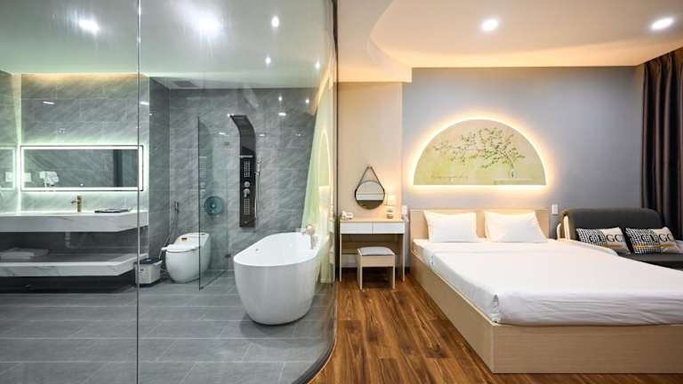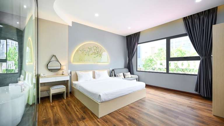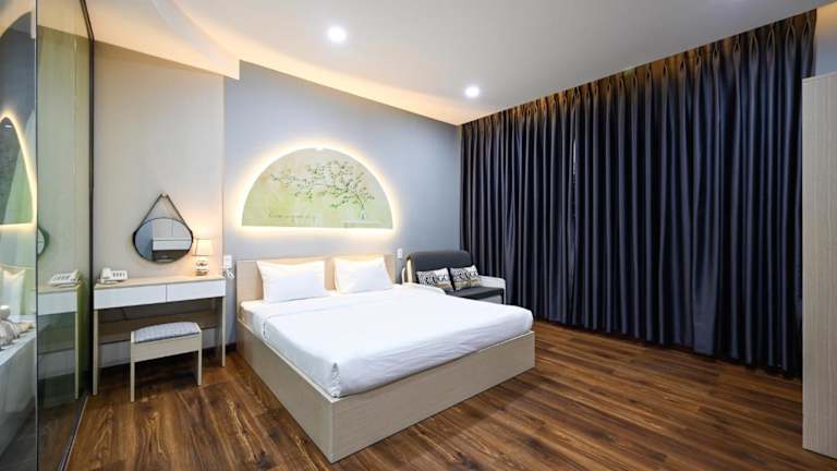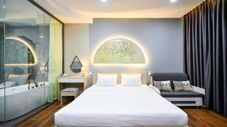 Das Golden Palm Hotel befindet sich im Bezirk Tan Binh, nur 1 km vom Flughafen Tan-Son-Nhat entfernt. In der Umgebung sind zahlreiche Sehenswürdigkeiten wie der Tan-Dinh-Markt (5,7 km), die Giac Lam-Pagode (5,7 km) und das Kriegsopfermuseum (6,6 km) erreichbar. Weitere Attraktionen, wie der Wiedervereinigungspalast (6,8 km) und das Einkaufszentrum Diamond Plaza (7,2 km), sind ebenfalls in der Nähe.