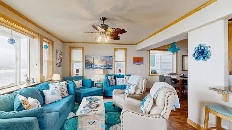 Das Sunset Beach House in Gold Beach ist der ideale Ort für einen Strandurlaub. Mit direktem Zugang zum Strand und kostenfreiem WLAN bietet dieses Ferienhaus alle Annehmlichkeiten, die Sie für einen entspannten Aufenthalt benötigen. Genießen Sie den Meerblick vom Balkon aus und nutzen Sie die gut ausgestattete Küche für die Zubereitung Ihrer Mahlzeiten. Die Umgebung bietet auch Möglichkeiten zum Radfahren und die Prähistorischen Gärten sind einen Besuch wert.