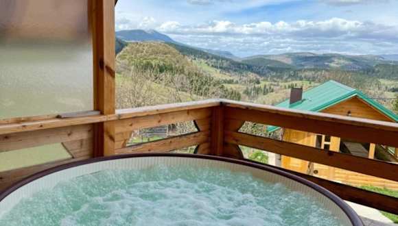 Das Sunset Lux Cottage Ravna Planina Pale - Jahorina bietet die ideale Ausgangsbasis für Outdoor-Aktivitäten wie Skifahren und Wandern. Nach einem aktiven Tag können Sie im Wellnessbereich des Cottages entspannen, der eine Sauna und einen Whirlpool umfasst. Genießen Sie die Ruhe des Gartens und nutzen Sie die kostenfreien Privatparkplätze.
