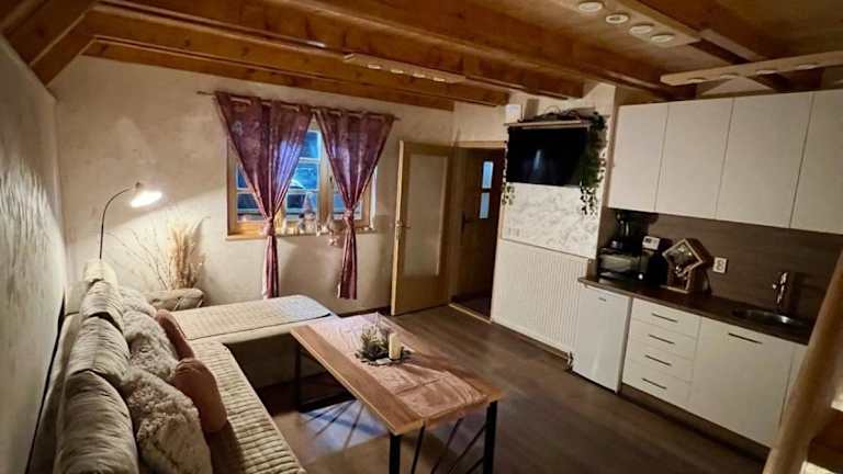 Das Sunset Lux Cottage Ravna Planina Pale - Jahorina in Pale ist eine gemütliche Unterkunft, die in einer malerischen Umgebung liegt und ideale Voraussetzungen für einen Skiurlaub bietet. Das Chalet verfügt über ein Schlafzimmer, ein Wohnzimmer, eine voll ausgestattete Küche und ein Badezimmer mit Dusche und Whirlpool. Entspannen Sie im Wellnessbereich mit Sauna und Whirlpool. Die Unterkunft bietet zudem einen Garten und kostenfreie Privatparkplätze. Erkunden Sie die Umgebung und besuchen Sie Sehenswürdigkeiten wie den Sarajevo-Tunnel und das Rathaus von Sarajevo. Der internationale Flughafen Sarajevo ist nur 30 km entfernt.