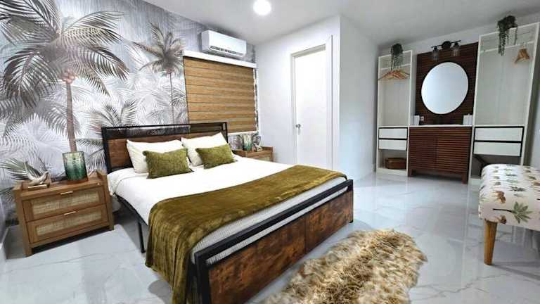 Die Villa verfügt über zwei Schlafzimmer und eine voll ausgestattete Küche. Zudem bietet sie direkten Zugang zu einer Terrasse mit Blick auf den Garten. Handtücher und Bettwäsche werden zur Verfügung gestellt.