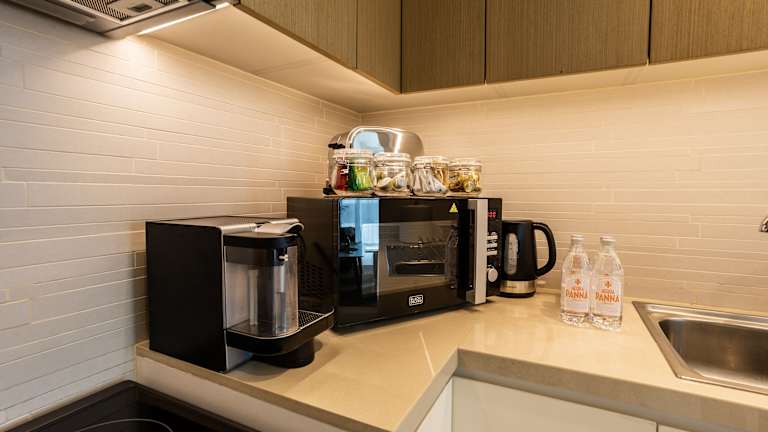 Die Ferienwohnung verfügt über 2 Schlafzimmer, ein Wohnzimmer und eine voll ausgestattete Küche mit Kühlschrank und Kaffeemaschine. Es sind 2 Badezimmer mit Dusche und kostenlosen Pflegeprodukten vorhanden. Handtücher und Bettwäsche werden bereitgestellt.