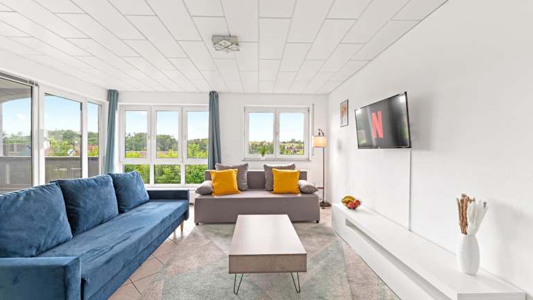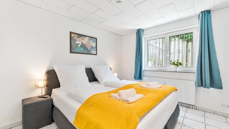 Sunshine - 4 Personen Airport Messe mit TG-Garage ist eine Ferienwohnung, die Übernachtungsmöglichkeiten für bis zu 4 Personen bietet. Die Unterkunft ist im Erdgeschoss gelegen und verfügt über einen Balkon sowie kostenlosen Privatparkplatz und kostenfreies WLAN.