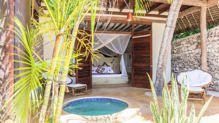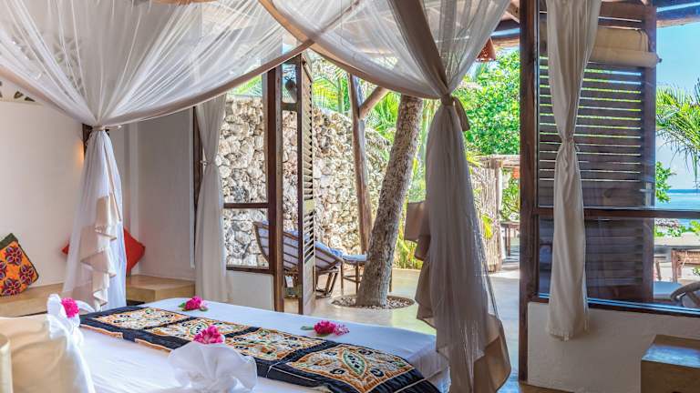 Die Unterkunft befindet sich in Matemwe, nur 30 Meter vom Strand Matemwe entfernt. Die Umgebung bietet Möglichkeiten zum Fahrradfahren und ist nur 45 Kilometer vom Friedensmuseum Beit el Amani sowie 26 Kilometer vom Kichwele Forest Reserve entfernt. Der nächstgelegene Flughafen, der Flughafen Sansibar, ist 50 Kilometer von der Unterkunft entfernt.