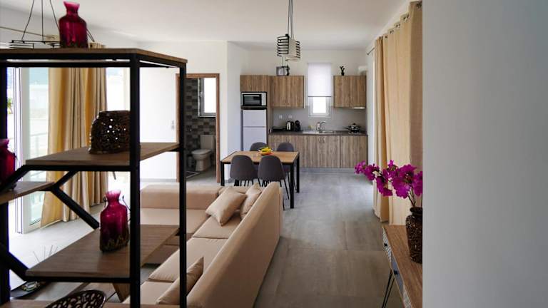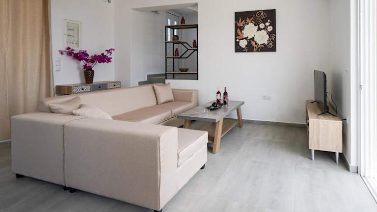Das Sunshine House Kos - Easy living by the sea bietet eine Unterkunft mit einem Garten und einer Terrasse. Die Ferienwohnung ist klimatisiert und bietet Annehmlichkeiten wie kostenloses WLAN und einen Privatparkplatz.