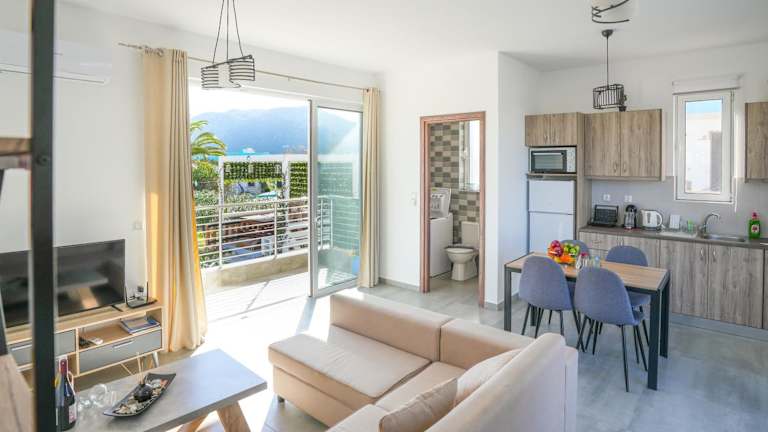 Die Ferienwohnung verfügt über 2 Schlafzimmer und 2 Badezimmer. Zur Ausstattung gehören Bettwäsche, Handtücher, ein Flachbild-TV sowie eine voll ausgestattete Küche. Ein Balkon mit Meerblick rundet das Angebot ab.