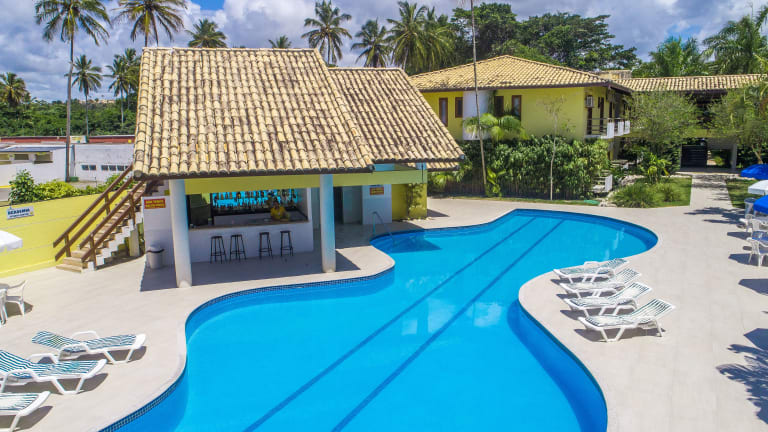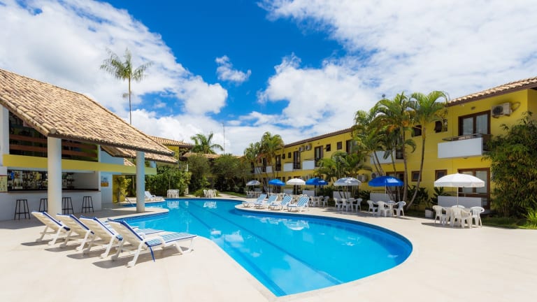 Das Hotel befindet sich in zentraler Lage in Porto Seguro, in unmittelbarer Nähe zu einem Strand. Die Entfernung zum Flughafen beträgt ca. 8,4 km, der nächste Strand ist nur 15 m entfernt, und das Stadtzentrum ist etwa 7 km entfernt.