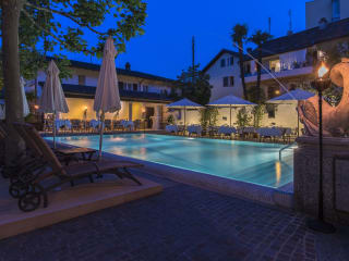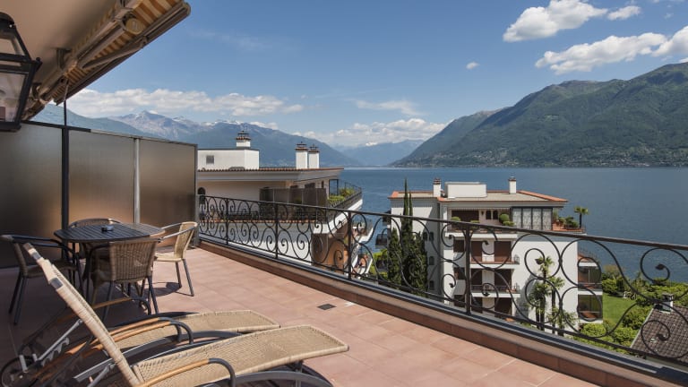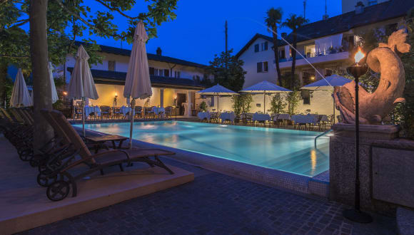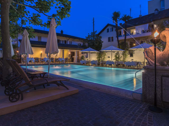 Das stilvolle Ferienhotel liegt direkt oberhalb der Seeuferpromenade des Lago Maggiore. Die Villa wurde 1980 im römischen Stil erbaut und verfügt über fünf Stockwerke (mit Lift) mit insgesamt 32 grosszügigen Junior Suiten und Suiten. Bei uns darf der Alltag vergessen und der Geist in Balance gebracht werden. Ganz nach dem Motto "Lazy like a Roman". Was es zum Abschalten braucht? Einen Liegestuhl, erfrischende Drinks und Snacks. All das und noch mehr gibt es bei uns am Pool, in der Aussenlounge oder auf der Sonnenterrasse Ihrer Junior-Suite. Dort gibt es "on top" noch den Seeblick dazu. Wem das noch nicht genug ist, kann den privaten Badesteg direkt am See nutzen. Oder sich bei einer Massage entspannen. Abends lädt die moderne italienische Küche im Restaurant Caesar's zum Geniessen ein. Auf einen schönen Tropfen aus dem Weinkeller muss dabei auch nicht verzichtet werden. Ganz "lazy" wird der Tag in der gemütlichen Gartenlounge bei Chillout-Klängen und einem Drink beendet.