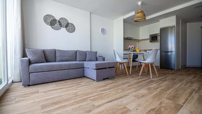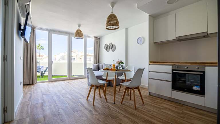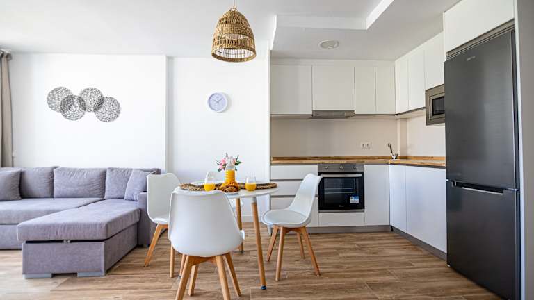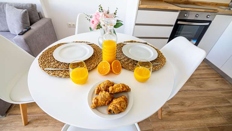 Die Ferienwohnung besteht aus einem separaten Schlafzimmer, einem Wohnzimmer, einer voll ausgestatteten Küche und einem Badezimmer. Die Ausstattung umfasst eine Klimaanlage, einen Flachbild-TV und eine Terrasse. Handtücher, Bettwäsche und Wäsche werden gemäß den Richtlinien der örtlichen Behörden gewaschen, und die Unterkunft wird zwischen den Aufenthalten desinfiziert.
