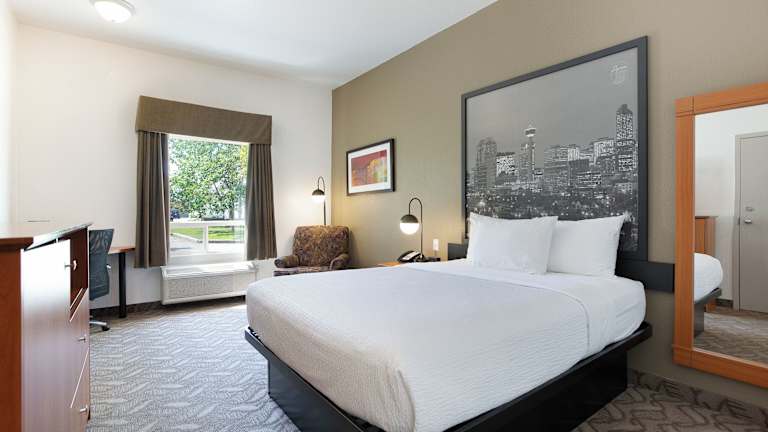 Super 8 by Wyndham Calgary Shawnessy Area verfügt über 85 Zimmer und bietet eine Vielzahl von Annehmlichkeiten, darunter einen Aufzug, eine Rezeption mit freundlichem Personal, sowie Einrichtungen für behinderte Gäste. Zu den weiteren Merkmalen gehören ein Kamin für eine behagliche Atmosphäre, ein Garten zur Entspannung und ein TV-Raum. Kostenfreies Parken ist sowohl in der Garage als auch auf dem Parkplatz möglich, und das Hotel bietet einen 24-Stunden-Sicherheitsdienst sowie einen Zimmerservice.