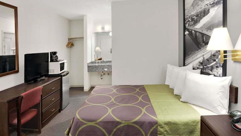 Die Zimmer im Super 8 East sind schlicht und komfortabel eingerichtet und bieten Annehmlichkeiten wie Kabel-TV, einen Schreibtisch, einen kleinen Kühlschrank und eine Mikrowelle. Kostenloses WLAN ist ebenfalls in den Zimmern verfügbar.