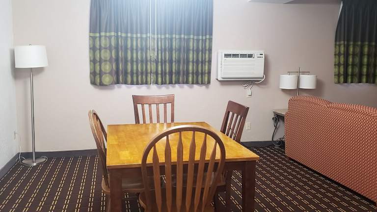 Das Motel bietet verschiedene Annehmlichkeiten wie einen Innenpool, einen Whirlpool und einen Fitnessraum. In der Umgebung können Gäste Aktivitäten wie Golfen und Skifahren genießen.