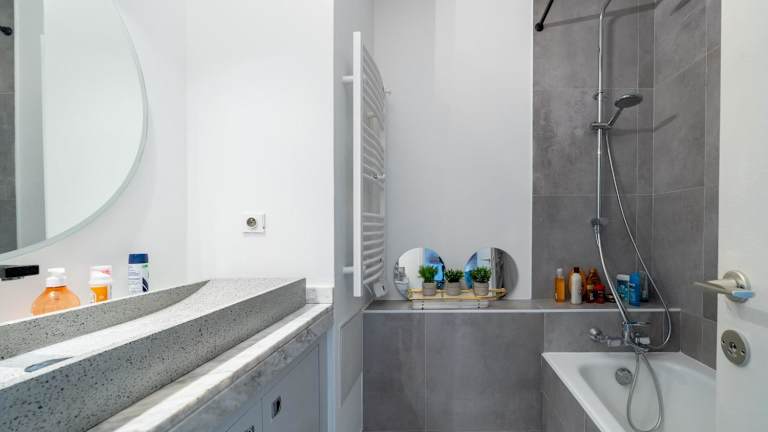 Die Ferienwohnung umfasst 1 Schlafzimmer und ein Wohnzimmer, ausgestattet mit Klimaanlage sowie schallisolierten Zimmern. Zur weiteren Ausstattung gehören eine voll ausgestattete Küche mit Kühlschrank und Kaffeemaschine, ein Badezimmer mit Dusche sowie kostenfreien Pflegeprodukten. Handtücher und Bettwäsche werden bereitgestellt.
