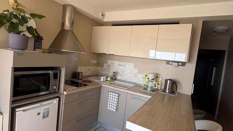 Das Apartment verfügt über eine eigene Küchenzeile, in der Sie Ihre Mahlzeiten ganz nach Ihrem Geschmack zubereiten können. Alternativ können Sie auch die nahegelegenen Restaurants erkunden und die lokale Küche genießen.