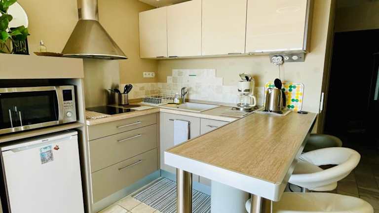 Das Apartment im Superbe appartement en bord de mer bietet Ihnen ein komfortables Wohnambiente mit einem Schlafzimmer, einem Wohnzimmer und einer Terrasse mit Stadtblick. Zur Ausstattung gehören ein Flachbild-TV, eine voll ausgestattete Küchenzeile mit Kühlschrank und Geschirrspüler sowie ein Badezimmer mit Dusche. Handtücher und Bettwäsche werden gestellt, sodass Sie sich um nichts kümmern müssen.