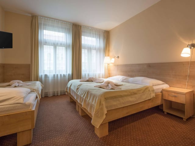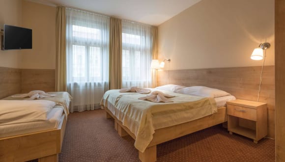 Genießen Sie Ihren Aufenthalt in Prag im Superior Hotel Prague Erleben Sie das Beste von Prag bei einem Aufenthalt im Superior Hotel Prague, einem einladenden Drei-Sterne-Hotel nur 10 Gehminuten von der Metrostation I.P. Pavlova entfernt. Die ideale Lage erleichtert die Erkundung der Stadt und ist perfekt für Familien und Freunde geeignet, da die Zimmer Platz für bis zu vier Personen bieten. Das Superior Hotel Prague verfügt über 67 komfortable Zimmer, die mit allem ausgestattet sind, was Sie für einen erholsamen Aufenthalt benötigen. Jedes Zimmer verfügt über Satellitenfernsehen, Telefon, Safe, Haartrockner, Kühlschrank und ein eigenes Bad. Die Gäste können im gesamten Hotel kostenloses Wi-Fi nutzen und den Tag mit einem köstlichen Frühstücksbuffet beginnen. Unser Hotel verfügt auch über eine sichere Tiefgarage für Ihr Auto und einen Wellnessbereich zum Entspannen. Verbringen Sie einen erschwinglichen und angenehmen Aufenthalt in Prag in der Nähe der U-Bahn und der wichtigsten Sehenswürdigkeiten der Stadt. Für Komfort und Bequemlichkeit zu einem günstigen Preis ist das Superior Hotel Prague die perfekte Wahl im Herzen von Prag.