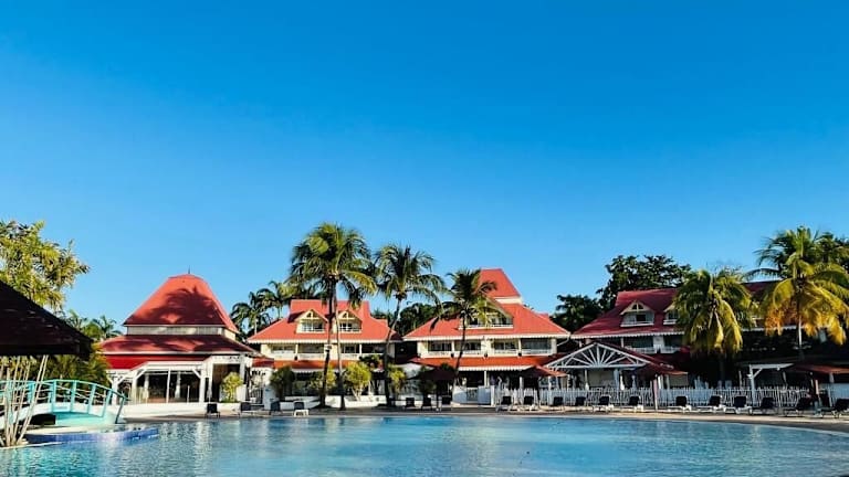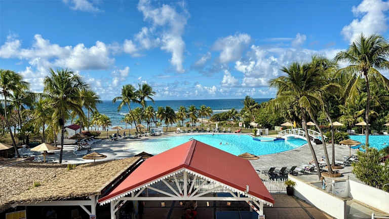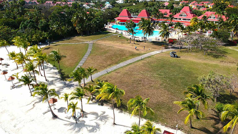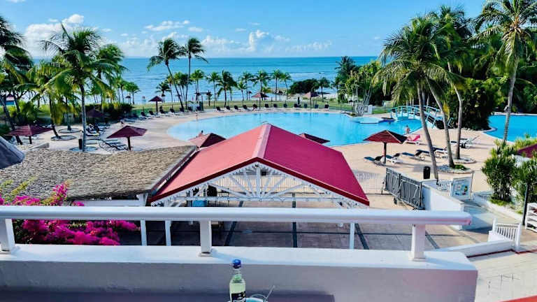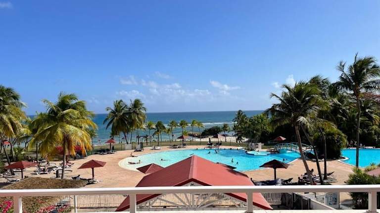 Sur la Plage - Club Sainte-Anne bietet Meerblick und verfügt über ein Restaurant, eine Gemeinschaftslounge, eine Bar sowie einen Garten. Die Unterkunft beinhaltet einen Außenpool und eine Terrasse. Mobilfunkanbieter haben Zugang zu WLAN sowie einem kostenlosen Privatparkplatz.