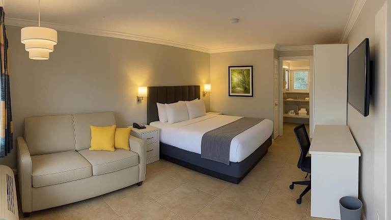 Das SureStay Plus by Best Western Orlando International Drive bietet 192 kürzlich renovierte Zimmer, die allen modernen Komfort bieten. Jedes Zimmer verfügt über eine Mikrowelle, einen Kühlschrank und Kaffeezubehör, um den Gästen den Aufenthalt so angenehm wie möglich zu gestalten. Zusätzlichen Komfort bieten ein Safe im Zimmer und ein Flachbild-Kabel-TV.