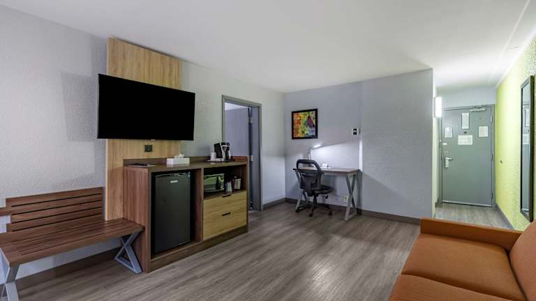 Das Best Western Plus St. Louis West-Westport bietet komfortable Nichtraucherzimmer mit einem Schreibtisch und einem Kühlschrank. Die Zimmer sind ideal für einen erholsamen Aufenthalt ausgestattet und bieten alles, was Sie für einen angenehmen Aufenthalt benötigen.