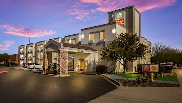 Das Surestay Plus Hotel by Best Western Superstition Springs liegt in Mesa und bietet eine günstige Lage in der Nähe von verschiedenen Städten und Attraktionen. Die Gäste können die Nähe zu Tempe, Scottsdale, Chandler, Gilbert, Apache Junction und Phoenix genießen. Das Hotel befindet sich auf dem Gelände des Superstition Springs Centers, einem Einkaufszentrum mit über 150 Geschäften. Der Phoenix-Mesa Gateway Airport ist nur sieben Meilen vom Hotel entfernt. In der Umgebung gibt es eine große Auswahl an Restaurants und Geschäften.