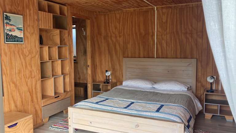 Die Zimmer im Surf and Stay Chile bieten einen gemütlichen Rückzugsort mit einer Terrasse, von der aus Sie einen atemberaubenden Blick auf die umliegenden Berge genießen können. Jedes Zimmer verfügt über ein eigenes Badezimmer und ist mit hochwertiger Bettwäsche ausgestattet, um Ihnen einen erholsamen Schlaf zu bieten.