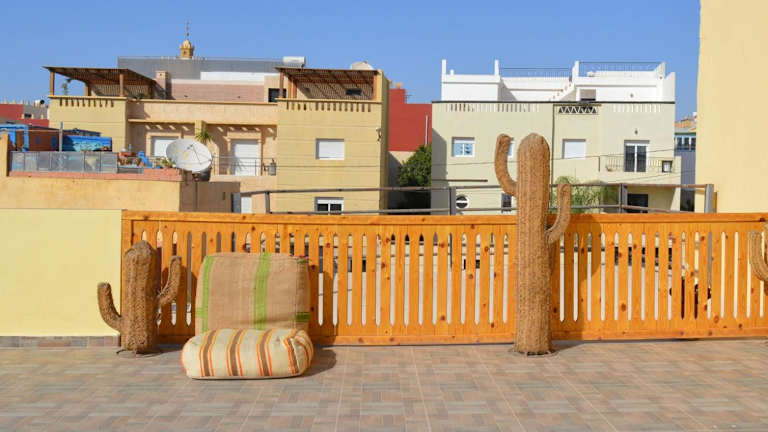 Das Surf Hostel Morocco in Tamraght Ouzdar bietet eine ideale Unterkunft für Strandliebhaber. Mit verschiedenen Einrichtungen wie kostenlosen Fahrrädern, einer Gemeinschaftslounge und einer Terrasse ist für Unterhaltung und Entspannung gesorgt. Das Hostel liegt in der Nähe mehrerer Strände und bietet eine 24-Stunden-Rezeption, kostenfreies WLAN und eine Gemeinschaftsküche. Die Zimmer sind einfach, aber gemütlich eingerichtet und verfügen über Gemeinschaftsbäder. Jeden Morgen wird ein leckeres Frühstück serviert. In der Umgebung können Gäste verschiedene Aktivitäten wie Reiten, Radfahren, Billard, Tischtennis und Darts ausüben. Das Hostel liegt in der Nähe des Hafens von Agadir und des Atlantica Parc Aquatique. Der Flughafen Agadir-Al Massira ist ebenfalls gut erreichbar.