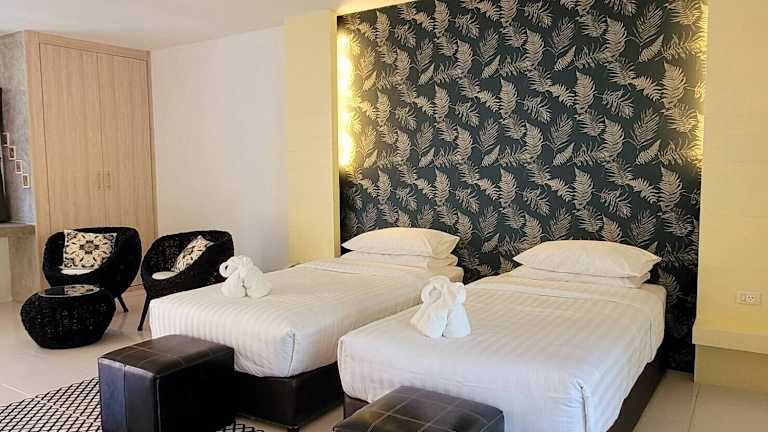Die klimatisierten Zimmer im Surintra Resort sind geräumig und modern eingerichtet. Sie bieten einen Blick auf den Pool oder die grüne Vegetation und verfügen über Annehmlichkeiten wie einen Kühlschrank, einen Safe und einen Wasserkocher. Ein Flachbild-Kabel-TV und kostenfreies WLAN sorgen für Unterhaltung und Komfort. Das Badezimmer ist mit einer Dusche und einer Whirlwanne ausgestattet und bietet Bademäntel und Hausschuhe.