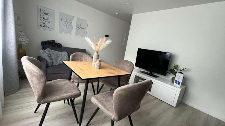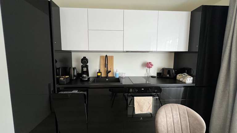 Das Apartment besteht aus einem Schlafzimmer, einem Wohnzimmer, einer voll ausgestatteten Küche mit Kühlschrank und Kaffeemaschine sowie einem Badezimmer mit Dusche und kostenlosen Pflegeprodukten. Handtücher und Bettwäsche werden gestellt, um Ihren Aufenthalt so angenehm wie möglich zu gestalten.