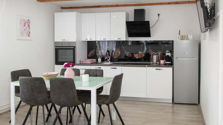 Die Ferienwohnung verfügt über zwei Schlafzimmer, ein Wohnzimmer, ein Badezimmer mit Badewanne und eine gut ausgestattete Küche mit Kühlschrank und Ofen. Ein Flachbild-TV sowie Handtücher und Bettwäsche werden bereitgestellt.