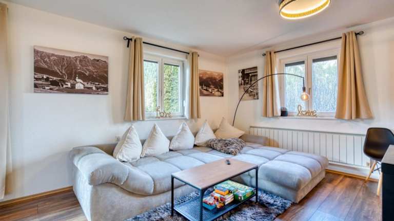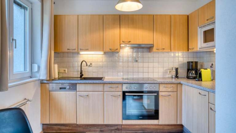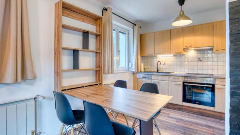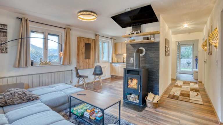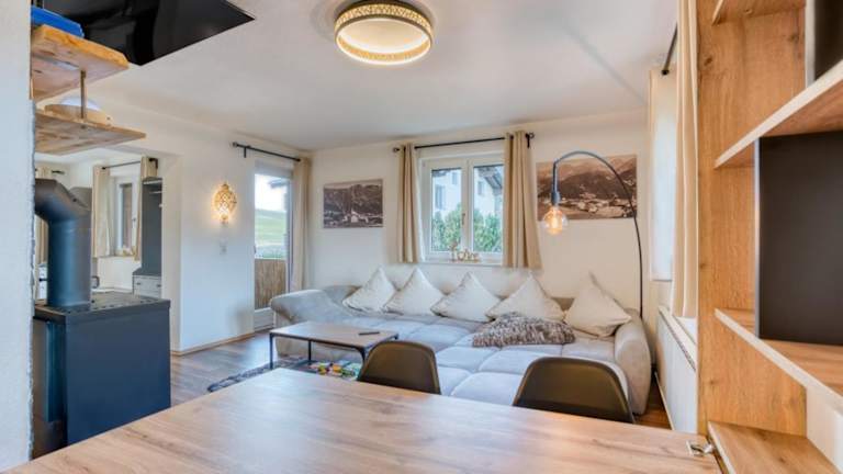 Die Ferienwohnung umfasst 2 Schlafzimmer, ein Wohnzimmer, ein Badezimmer mit Dusche sowie eine gut ausgestattete Küche mit Kühlschrank und Geschirrspüler. Eine Terrasse mit Bergblick ist ebenfalls vorhanden. Handtücher und Bettwäsche werden bereitgestellt. Ein Flachbild-TV ist Teil der Ausstattung.
