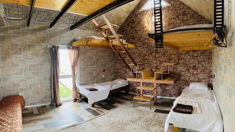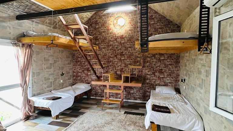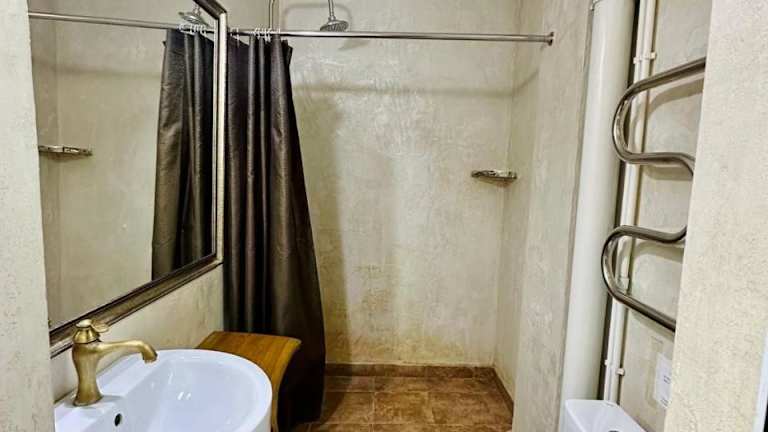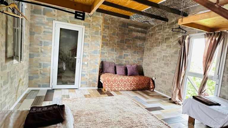 Die Unterkunft befindet sich in Schymkent, nur 14 km vom nächstgelegenen Flughafen entfernt. Die Umgebung bietet eine ruhige Atmosphäre mit einem Garten und einer Terrasse, die den Gästen zur Verfügung stehen.